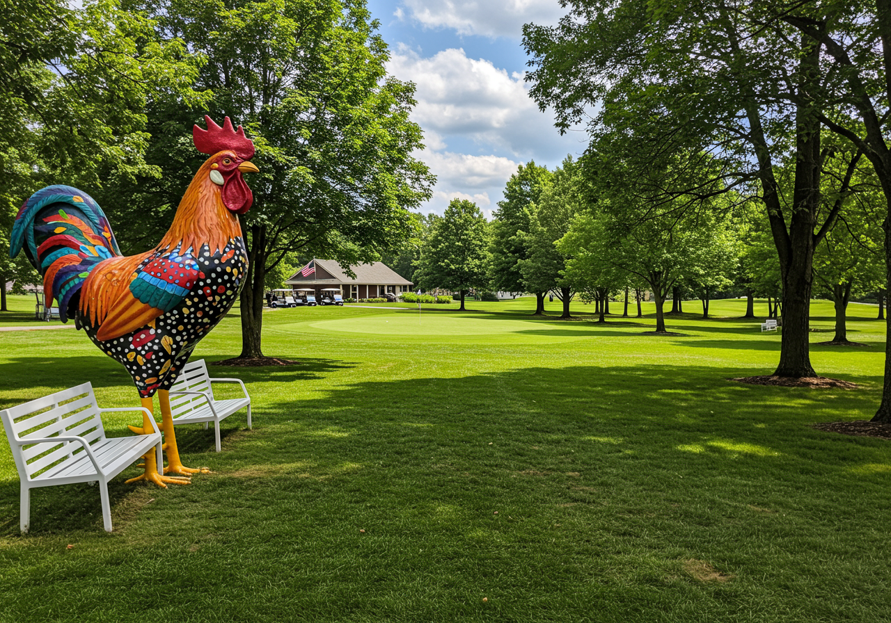 True to its name, Farmstead Golf Links gives players the feeling of playing golf “down on the farm,” (which you know us horse people love). The course occupies property that used to be farmland for a prominent local family, the McLambs. In 2001, the golf course, designed by Willard Byrd and Dave Johnson, emerged from the landscape and has been a delight to its loyal local players and thousands of annual visitors ever since. With sprawling fairways, well-placed bunkers, and undulating greens, the course has an open feel, with wind affecting play most every day. We had to club up 2 clubs on the back 9. As much as I love houses, I so enjoyed not seeing one house the whole day. (The bad news about the lack of houses will come as you read on).