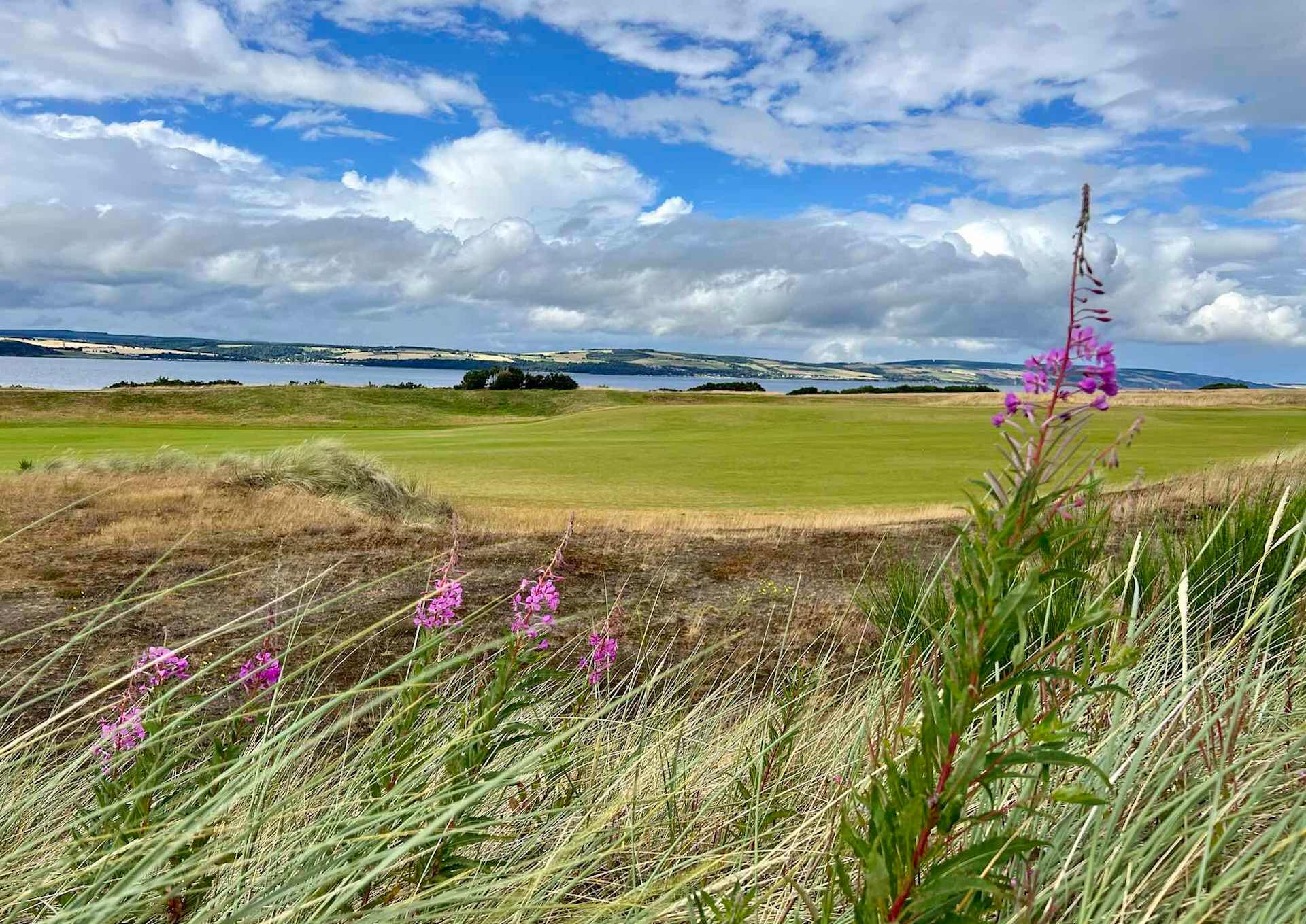 start at the low points right down on the Moray Firth, hugging the shoreline and holes 1 and 10 go in opposite directions. The opening couple of holes feel tight and claustrophobic. I remember being nervous with each tee shot. The holes along the firth are stunning, water shimmering in the crisp, afternoon sun. The course has the feeling of being arranged in tiers or shelves. Subsequentlly that gives the player the perspective that they are almost always playing adjacent to the firth. A firth is narrow inlet off the sea or the ocean. Scotland has MANY firths that head out to sea. We pretty much call them “rivers”.